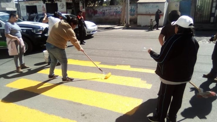 NICOLÁS ROMERO, Méx.- Con el objetivo de elevar la calidad de vida de la población y mejorar la imagen urbana de las comunidades, ciudadanos y empresarios hacen equipo para la pinta de guarniciones, topes y pasos peatonales en diversas comunidades.