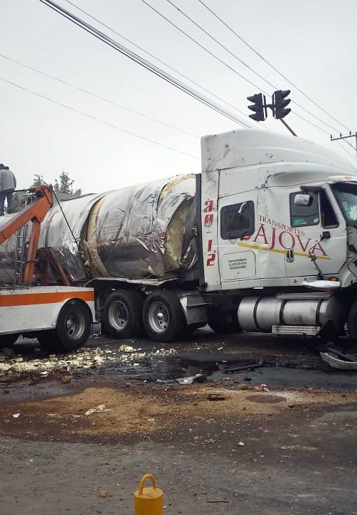 Tlalnepantla, Méx.- Elementos de la Subdirección de Tránsito y Vialidad de Tlalnepantla reabrieron a la circulación las avenidas Gustavo Baz y Radial Toltecas, en el fraccionamiento Rivera del Bosque, luego de realizar maniobras durante más de cinco horas para retirar un tractocamión que volcó en el lugar, el cual transportaba sulfato de aluminio líquido. La Comisaría General de Seguridad Pública (CGSP) informó que personal de protección civil y bomberos acordonaron la zona, controlaron una fuga de la sustancia química; posteriormente, se trasvasó el líquido a otra pipa y se retiró el camión, maniobra en la que participaron siete grúas. La CGSP indicó que se contó con el apoyo de personal de la Dirección de Servicios y Mantenimiento Urbano; Policía y Protección Civil del Estado de México, así como de la Secretaría de la Defensa Nacional.