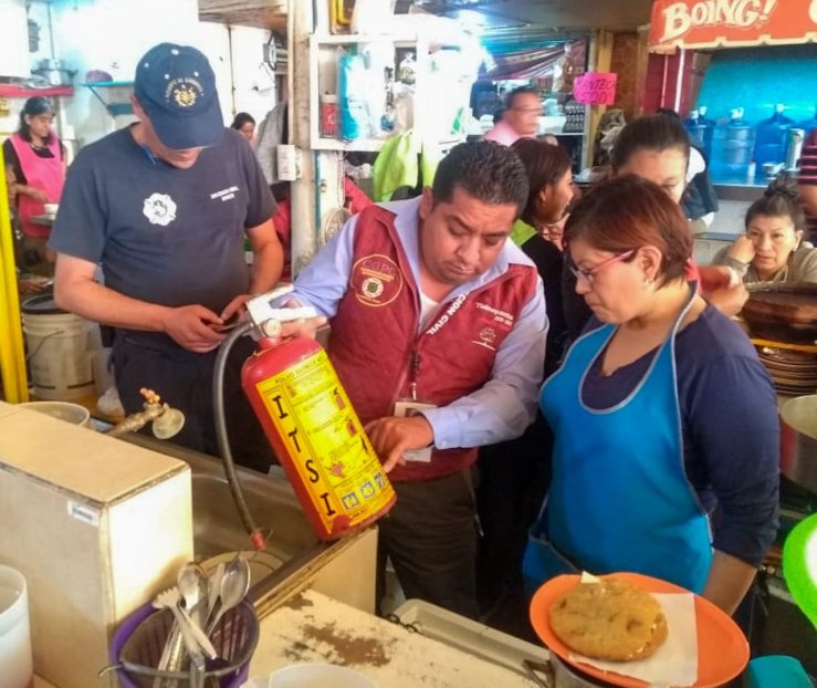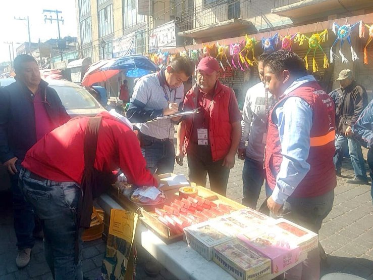 En Tlalnepantla, operativo contra pirotecniaElementos de protección civil y bomberos de Tlalnepantla realizaron un operativo en la zona centro del municipio contra la venta ilegal de pirotecnia, aseguraron 28 kilogramos de estos productos; también verificaron instalaciones, tanques de gas y conexiones eléctricas en puestos establecidos y semifijos.Jaime Sánchez Vargas, Coordinador Municipal de Protección Civil, explicó que se levantaron actas circunstanciadas en los puestos donde se vendían juegos pirotécnicos, se trasladó la mercancía a la estación central de bomberos y se advirtió a los comerciantes que en caso de reincidir serán puestos a disposición de las autoridades competentes.Se llevó a cabo un recorrido en locales, puestos y en el mercado Filiberto Gómez, para verificar que cuenten con instalaciones seguras, botiquines, extintores y en general que cumplan con las medidas mínimas para evitar cualquier emergencia; de no ser así, se hacen recomendaciones a los locatarios, en caso de reincidir se realizarán los procedimientos administrativos correspondientes.Además de la zona centro, estos operativos se aplican en mercados, empresas y ferias instaladas en la demarcación.Participaron elementos de Protección Civil, Comisaría General de Seguridad Pública, Policía Estatal, Guardia Nacional y personal de abasto y comercio del Gobierno de Tlalnepantla.