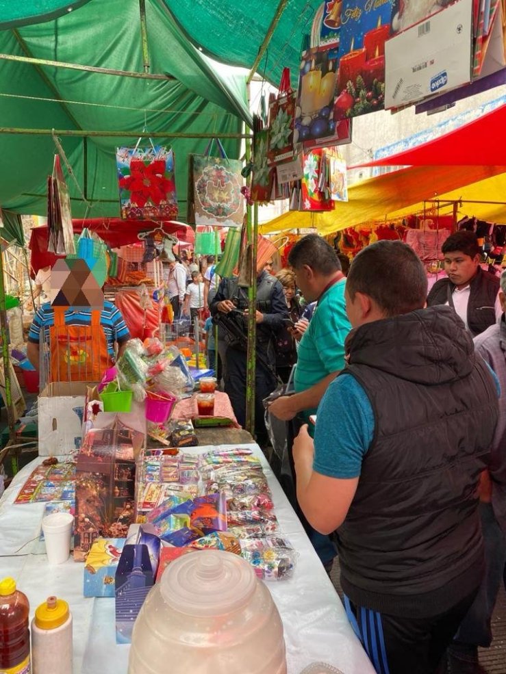 Se llevó a cabo un acta circunstanciada en uno de los puestos y se realizaron seis retiros más del producto en que los comerciantes se negaron a firmar el documento; el material fue trasladado a las estaciones central y oriente de bomberos para su resguardo.