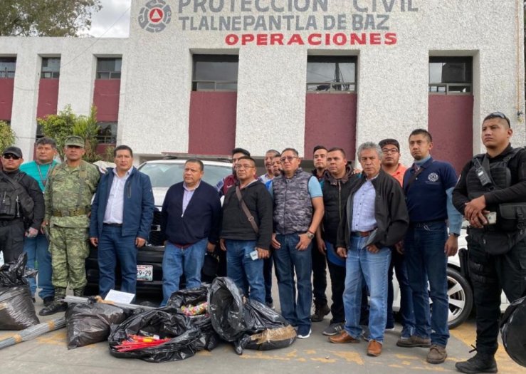 En los operativos de San Andrés Atenco y Tlalnepantla Centro participaron 70 elementos de distintas áreas de la Gobierno Municipal y 11 de la Guardia Nacional, el material asegurado se trasladó a la estación central de bomberos.