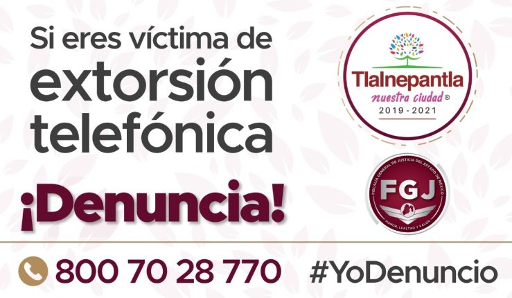 El Gobierno de Tlalnepantla inició una campaña para reforzar las acciones de prevención y combate del delito de extorsión, que se lleva a cabo en calles, redes sociales, medios de comunicación y a través de las redes vecinales de seguridad por cuadra conformadas por habitantes de las diversas comunidades.