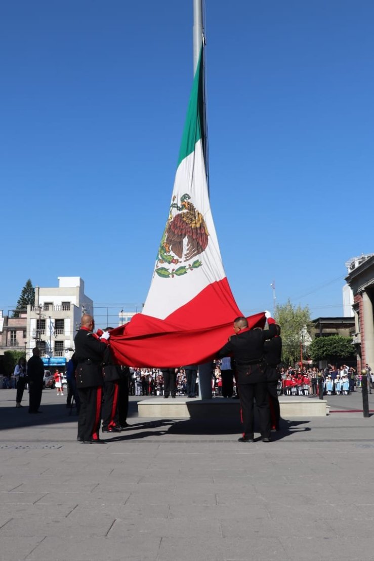 El Alcalde presidió la ‘Incineración de la Enseña Patria’ en cumplimiento del Artículo 54 Bis de la Ley sobre el Escudo, la Bandera y el Himno Nacional y tomó protesta a las escoltas de 23 instituciones educativas de Nuestra Ciudad, a quienes encomendó el Lábaro que simboliza la independencia, el honor, las instituciones y la integridad del territorio nacional.