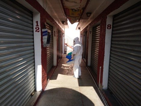 Se continúa con la sanitización de siete centros de abasto de Tlalnepantla Oriente y el cierre de plazas públicas en esta zona con vallas metálicas y cinta delimitadora, para evitar la concentración de personas.