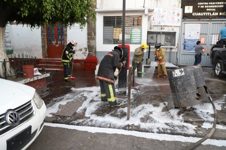 Cuautitlán, Méx.- Como parte de las acciones preventivas y de higiene emprendidas por el Gobierno municipal durante la presente contingencia sanitaria, la tarde de ayer sábado se realizaron trabajos de limpieza al exterior del penal de Cuautitlán, ubicado en el centro del municipio.