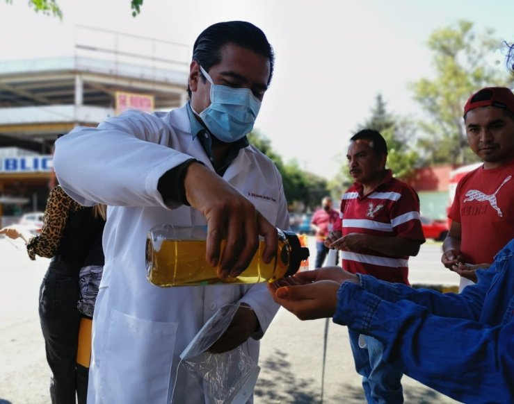 Durante estos trabajos, encabezados por Raciel Pérez Cruz, Presidente Municipal, se entregaron cubrebocas y gel antibacterial al personal de salud que labora en el hospital y las personas que se encuentran en espera en la vía pública.