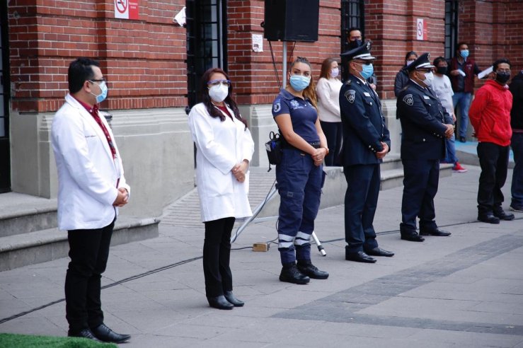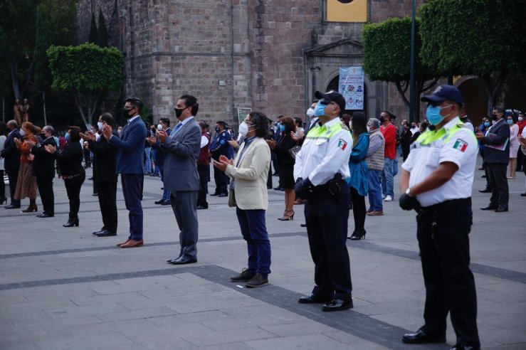 Indicó que el minuto de aplausos también está dedicado al personal médico, de protección civil y de la Comisaría General de Seguridad Pública de Tlalnepantla que durante estos meses de contingencia sanitaria han arriesgado su vida al estar en la primera línea de batalla.