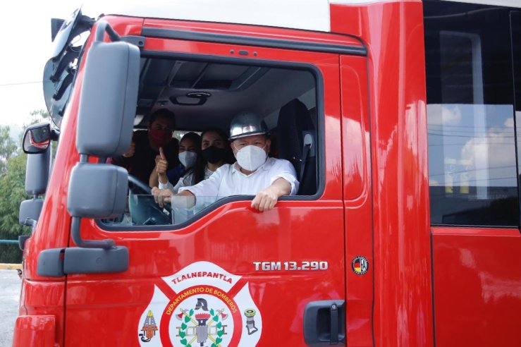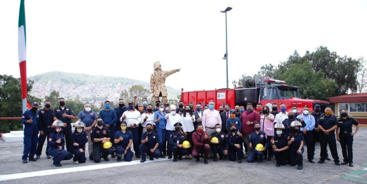 El Presidente Municipal entregó un camión autobomba con tecnología de última generación que será de uso exclusivo para Tlalnepantla Oriente y equipos de protección personal para bomberas y bomberos, además de cascos y chalecos rosas otorgados por las empresas Chedraui y CEMEX.