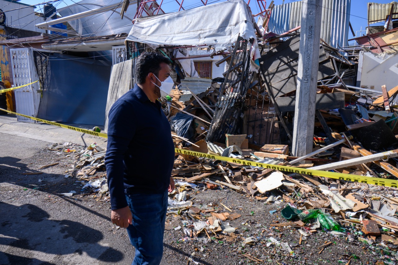 Los cuerpos de auxilio municipal, encabezados por la Coordinación de Protección Civil y Bomberos, acudieron a la zona para auxiliar a la ciudadanía y revisar las condiciones de los inmuebles que fueron afectados por la explosión de un tanque de gas.