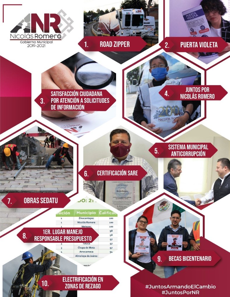 Ante el contexto de la pandemia de Covid-19, ejerciendo un gobierno sensible, solidario, capaz y apoyado por un equipo joven, el alcalde Armando Navarrete lanzó el innovador programa “Juntos Por Nicolás Romero,” primero de su tipo en implementarse en el Estado de México, con el que han sido beneficiadas más de 100 mil personas, con paquetes que contienen productos de primera necesidad, con los que se ha respaldado a sectores vulnerables como adultos mayores, mujeres jefas de familia, discapacitados y desempleados.