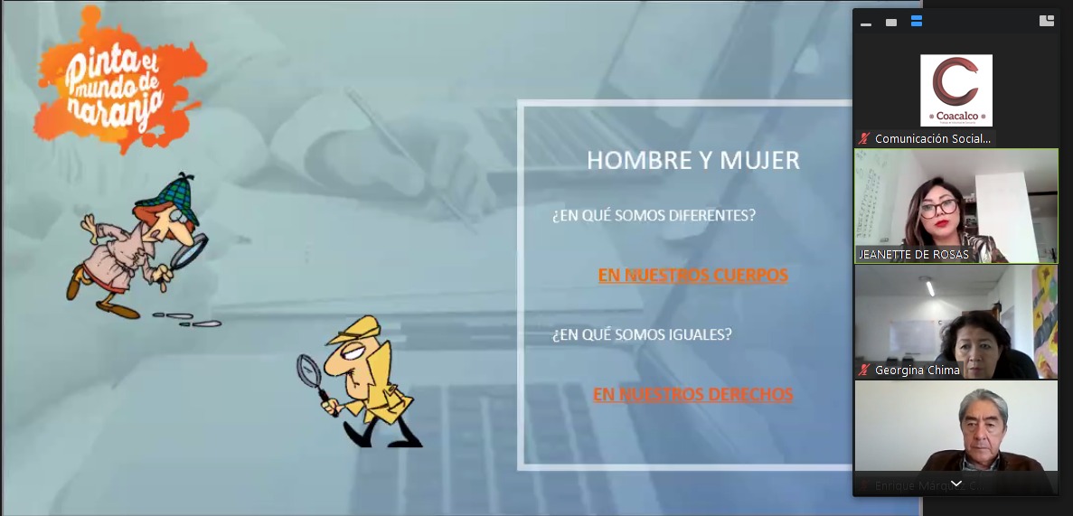 En esta ocasión, vía Zoom, Jeanette de Rosas, especialista en temas de género, impartió la conferencia “La perspectiva de género en la educación”, en la que participaron autoridades educativas, docentes y padres de familia del jardín de niños “Cuitláhuac”.