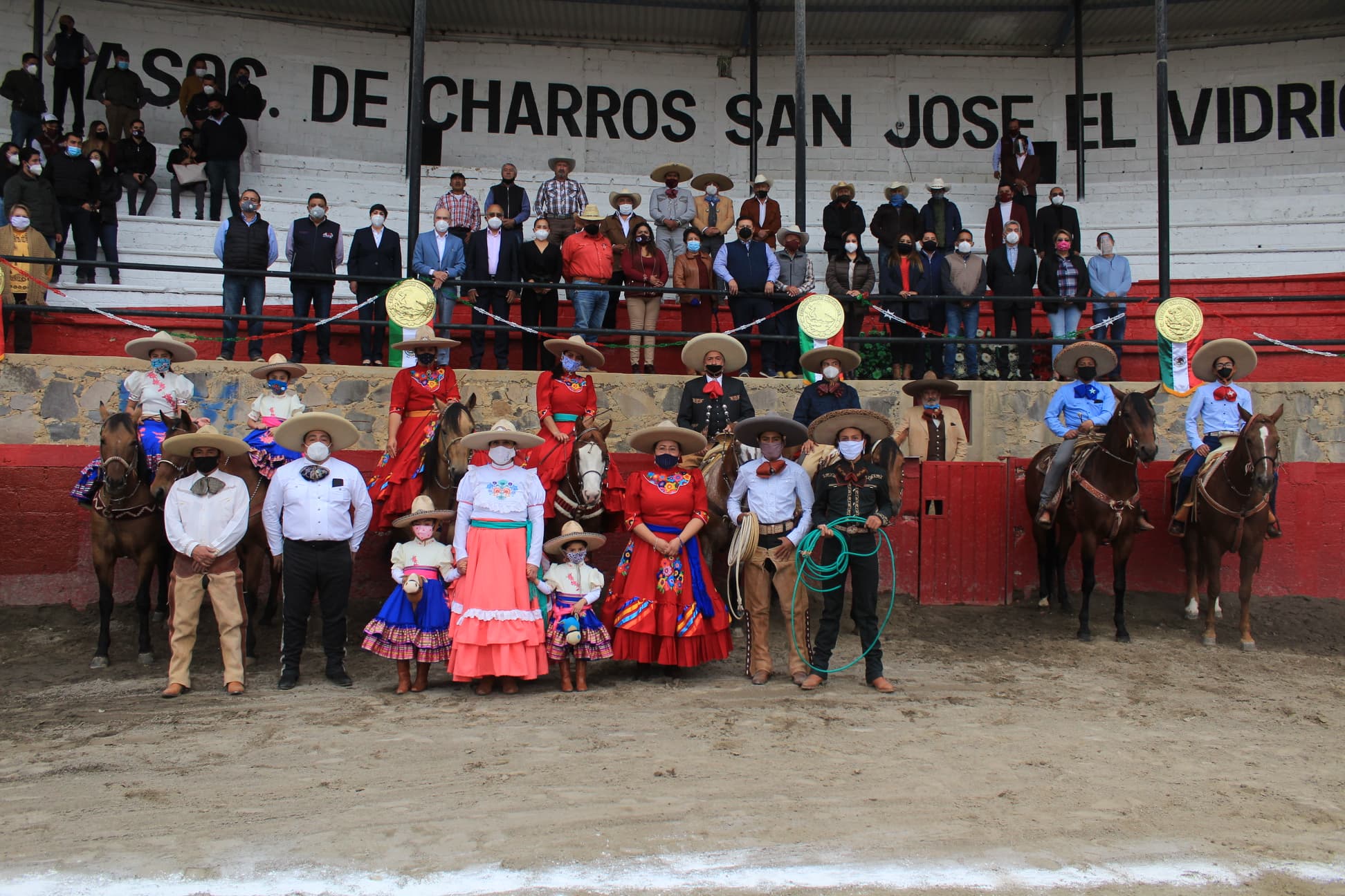 Asimismo y con la presencia de Antonio Alemán, presidente de la Asociación de Charros del Estado de México, se llevó a cabo una exhibición de charrería que incluyó calado de caballo, giros de 360 y 180 grados, con los que los equinos mostraron su alto grado de adiestramiento y la preparación de sus jinetes, manganas a caballo, floreo de reata, escaramuzas, así como la presentación de mujeres charras, entre otras suertes del deporte nacional.