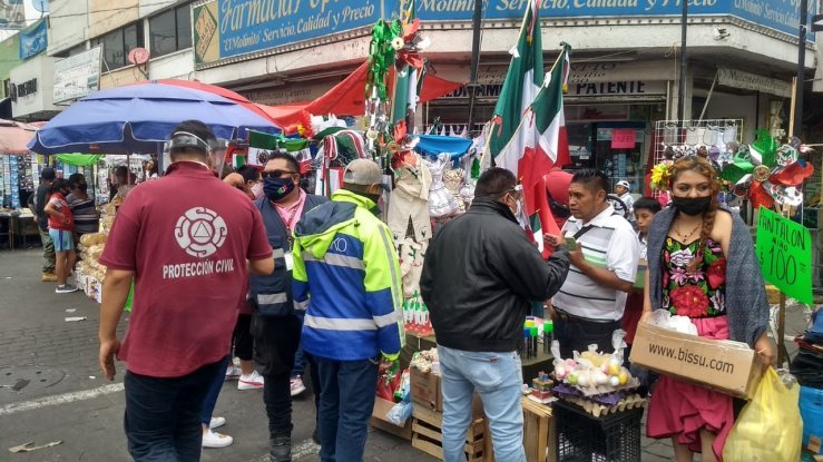 También verificaron instalaciones eléctricas, tanques de gas, que los puestos contaran con botiquines y extintores; se hicieron recomendaciones a los locatarios para cumplir con la normatividad correspondiente y de seguridad, así como las medidas sanitarias para evitar la transmisión del COVID-19.