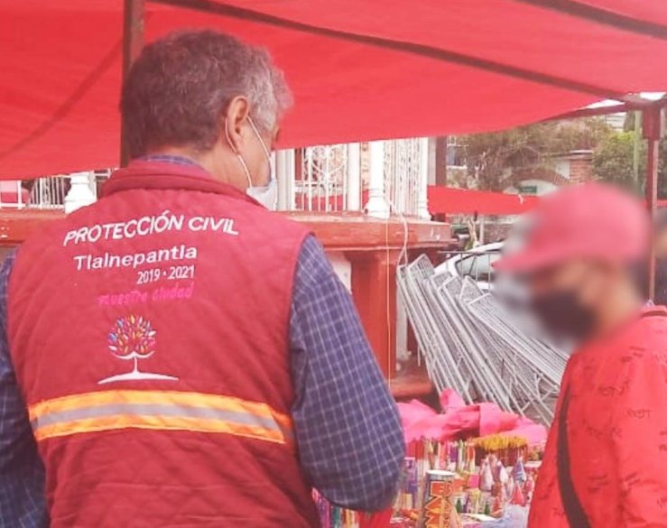 Tlalnepantla, Méx.- Personal de la Coordinación Municipal de Protección Civil de Tlalnepantla realizó operativos preventivos en mercados y tianguis del municipio contra la venta ilegal de pirotecnia y para verificar que los puestos contaran con las medidas mínimas de seguridad.