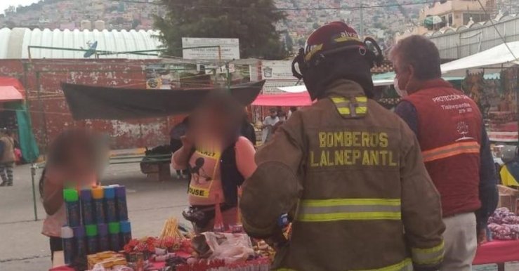 Bomberos de Nuestra Ciudad efectuaron recorridos en el mercado de San Juan Ixhuatepec y el centro del municipio, exhortaron a los vendedores de juegos pirotécnicos a retirar el producto y les informaron que en caso de no hacerlo la mercancía se trasladaría a la estación central para su resguardo.