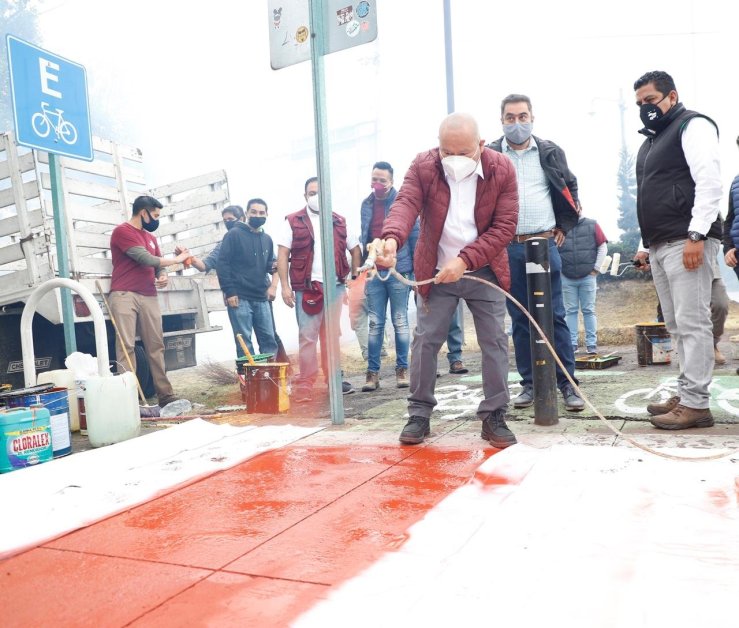En compañía de vecinas y vecinos de las unidades habitacionales El Rosario, de Tlalnepantla, y Manuel Rivera Anaya CROC I, en Azcapotzalco, servidoras y servidores públicos de ambas localidades, los mandatarios plantaron árboles, pintaron líneas y señalización de una ciclopista, líneas peatonales de avenidas y calles, letreros limítrofes, entre otras actividades para mejorar los espacios públicos y de recreación.