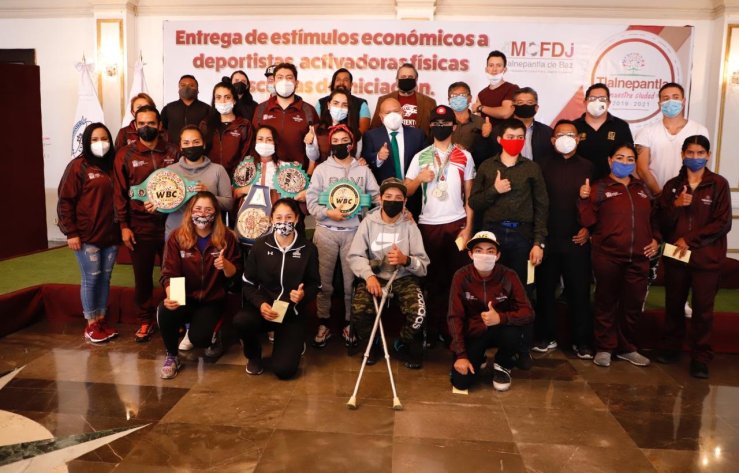 El Presidente Municipal entregó estímulos económicos a Jacqueline Calvo Ramírez, boxeadora; Ingrid Fabiola Méndez Pérez, basquetbolista de competencias nacionales e internacionales; Roberto Emir González González, beisbolista; Cindy Alejandra Corona Chávez, boxeadora con campeonatos nacionales e internacionales; José Andrés Sánchez Herrera, deportes mentales, ajedrez; Diego Tepoxtecatl Guzmán, karateca con dos mundiales.