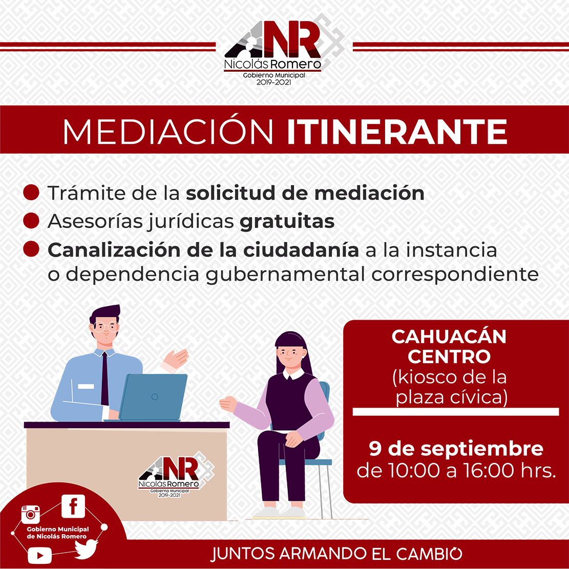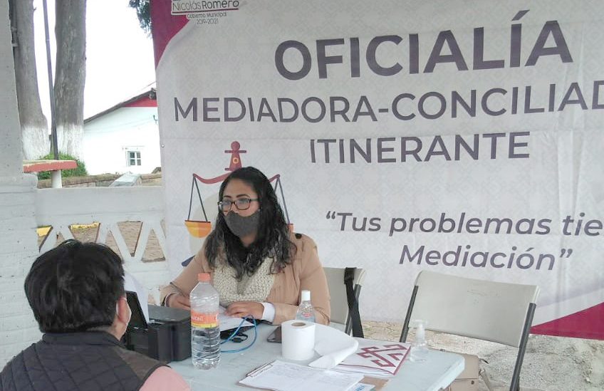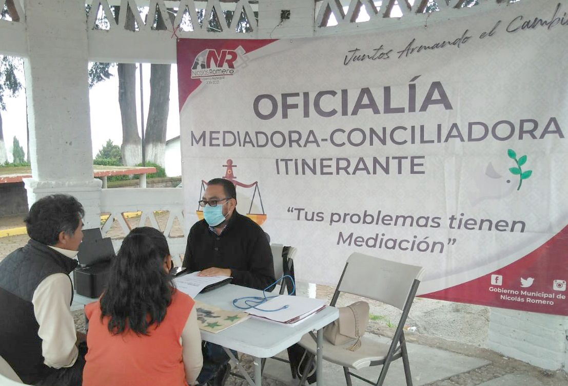 Es por ello, que la Oficialía Mediadora-Conciliadora, no se limita a la labor en oficinas y lleva su módulo a las distintas comunidades nicolásromerenses para fomentar la cultura de paz, del perdón y de la restauración de las relaciones interpersonales y sociales, tal y como lo marca la Ley de Mediación del Estado de México. Además, apoya la economía de las familias, ya que con el programa itinerante, éstas no se ven en la necesidad de realizar gastos de traslado, hasta la sede de la referida dependencia.