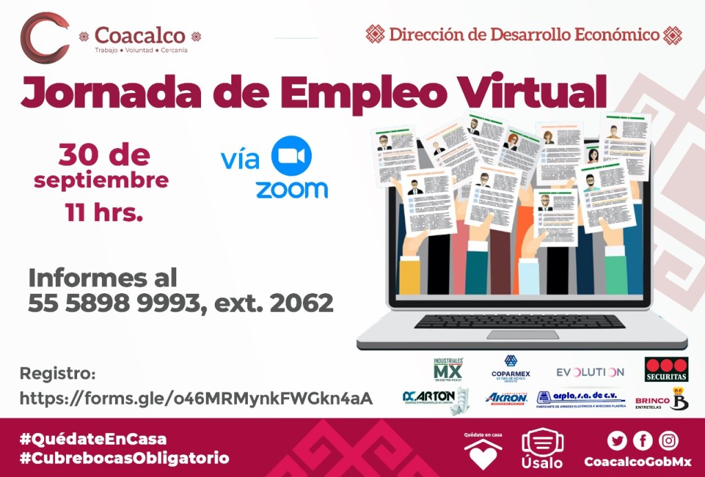 La dirección de Desarrollo Económico informó que dicha jornada, a través de la plataforma Zoom, se llevará a cabo el miércoles 30 de septiembre a las 11:00 horas y en esta participarán 10 empresas, mismas que ofertarán cerca de 130 vacantes.