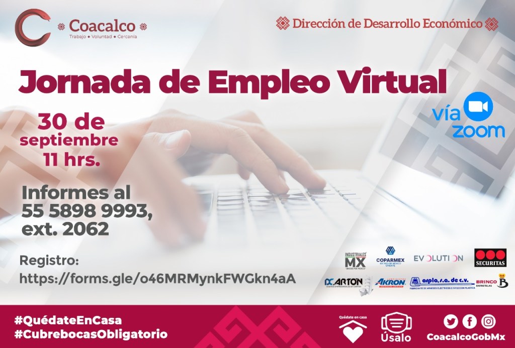 Coacalco, Méx.- Acatando los lineamientos que demanda la nueva normalidad y para mayor seguridad de la ciudadanías coacalquense, el Gobierno Municipal, encabezado por el Alcalde Darwin Eslava, retomará las jornadas de empleo, ahora de manera virtual, con la finalidad de acercar a los solicitantes vacantes laborales dignas.