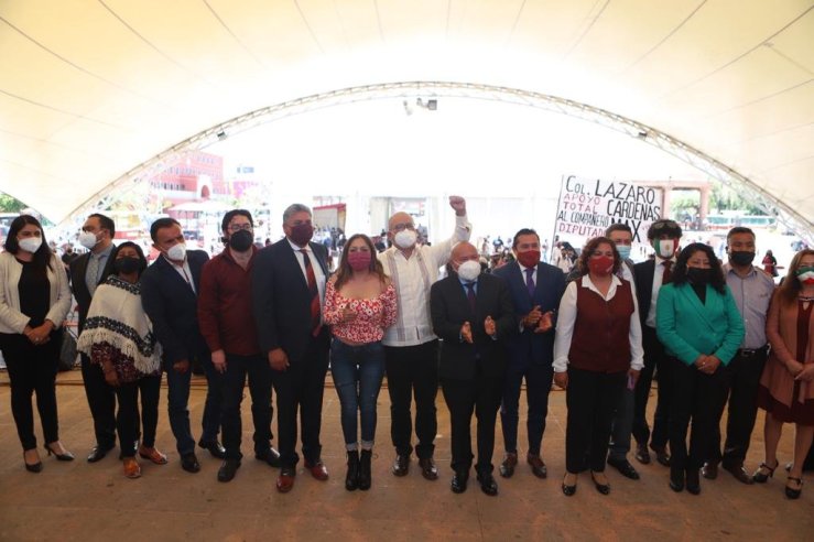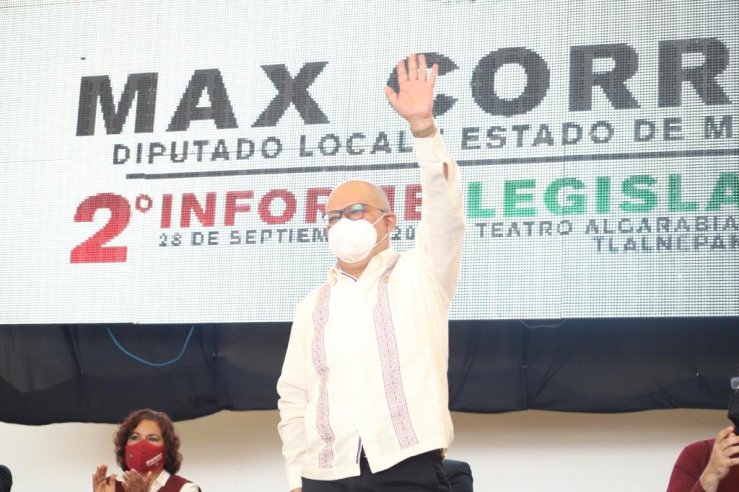 Max Correa Hernández estuvo acompañado de diputados locales, federales, el alcalde de Tlalnepantla Raciel Pérez Cruz, el secretario nacional de Jóvenes de Morena, Issac Montoya, así como por líderes sociales, indígenas, obreros y campesinos.