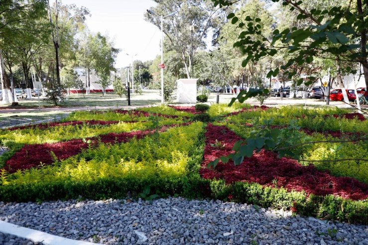 También mantenimiento en áreas verdes, construcción de una jardinera central, sembrado de plantas de ornato como arrayán, amaranto, duranta y ficus. Se instalaron bancas tipo poliedro urbano, juegos infantiles y luminarias, construcción de registros, nichos eléctricos rampas para discapacitados y aplicación de pintura en guarniciones y señalización, entre otros.