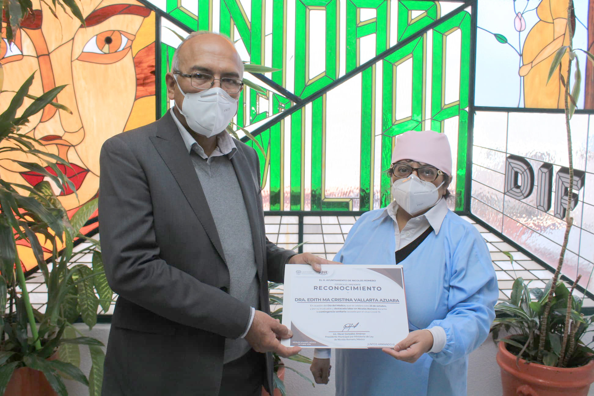 Previamente, encabezó la entrega de reconocimientos a médicos adscritos al área de Salud del gobierno local, donde resaltó el compromiso y entrega de parte de éstos, para velar por la salud de los ciudadanos nicolásromerenses, al igual que por contribuir a salvar vidas.