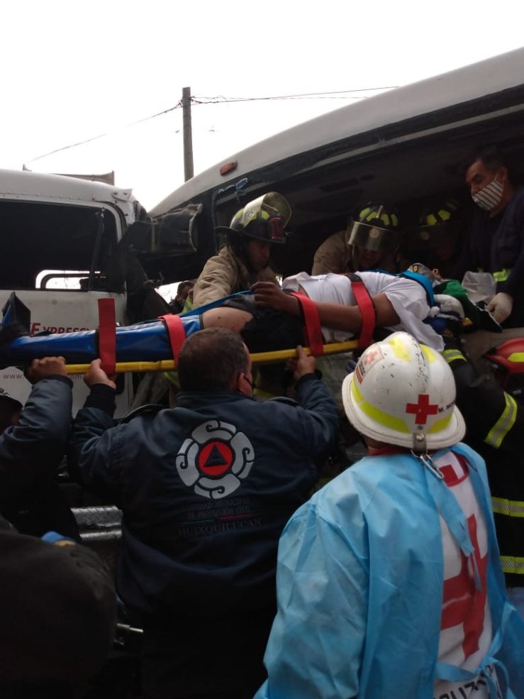 El incidente se registró en el kilómetro 23 de dicha carretera, a la altura de San José Tejamanil, con dirección a Toreo, donde resultaron 17 personas lesionadas que fueron trasladadas a diferentes unidades médicas a través de Cruz Roja de Naucalpan y Bomberos.