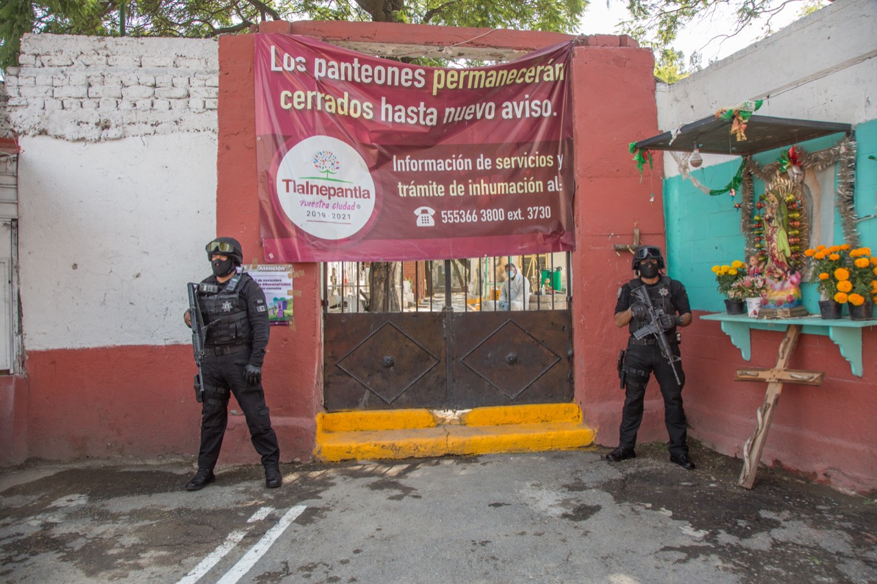 Tlalnepantla, Méx.- La alcaldía municipal de Nuestra Ciudad implementa operativos en 17 panteones municipales y uno privado para evitar la concentración de personas como medida para mitigar la propagación del COVID-19.