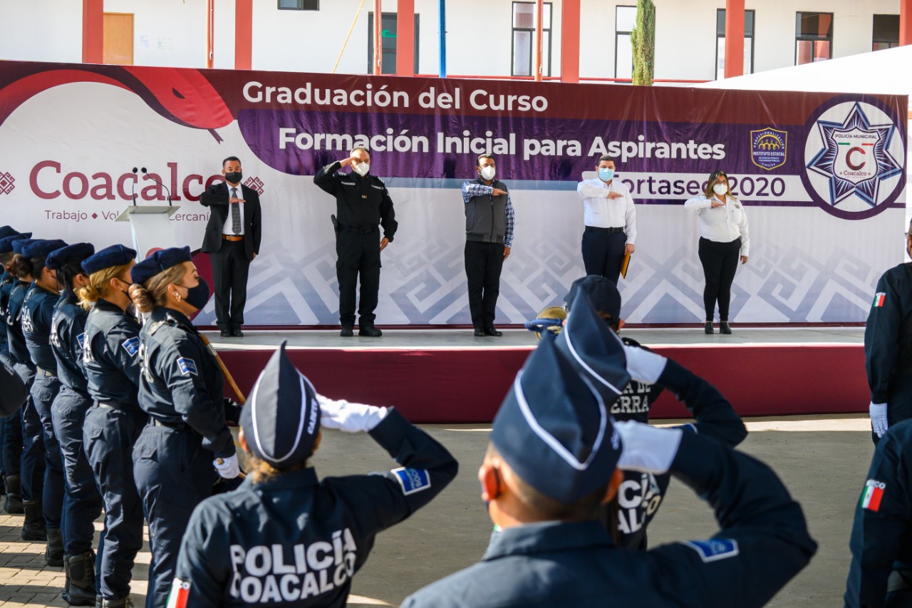 Coacalco, Méx.- Al encabezar la graduación de 62 nuevos elementos que concluyeron el curso de Formación Inicial y se integran a la corporación policíaca, el Presidente Municipal, Darwin Eslava, afirmó que en Coacalco se continúa cumpliendo el compromiso de consolidar una policía confiable y capacitada para beneficio de la ciudadanía del municipio.