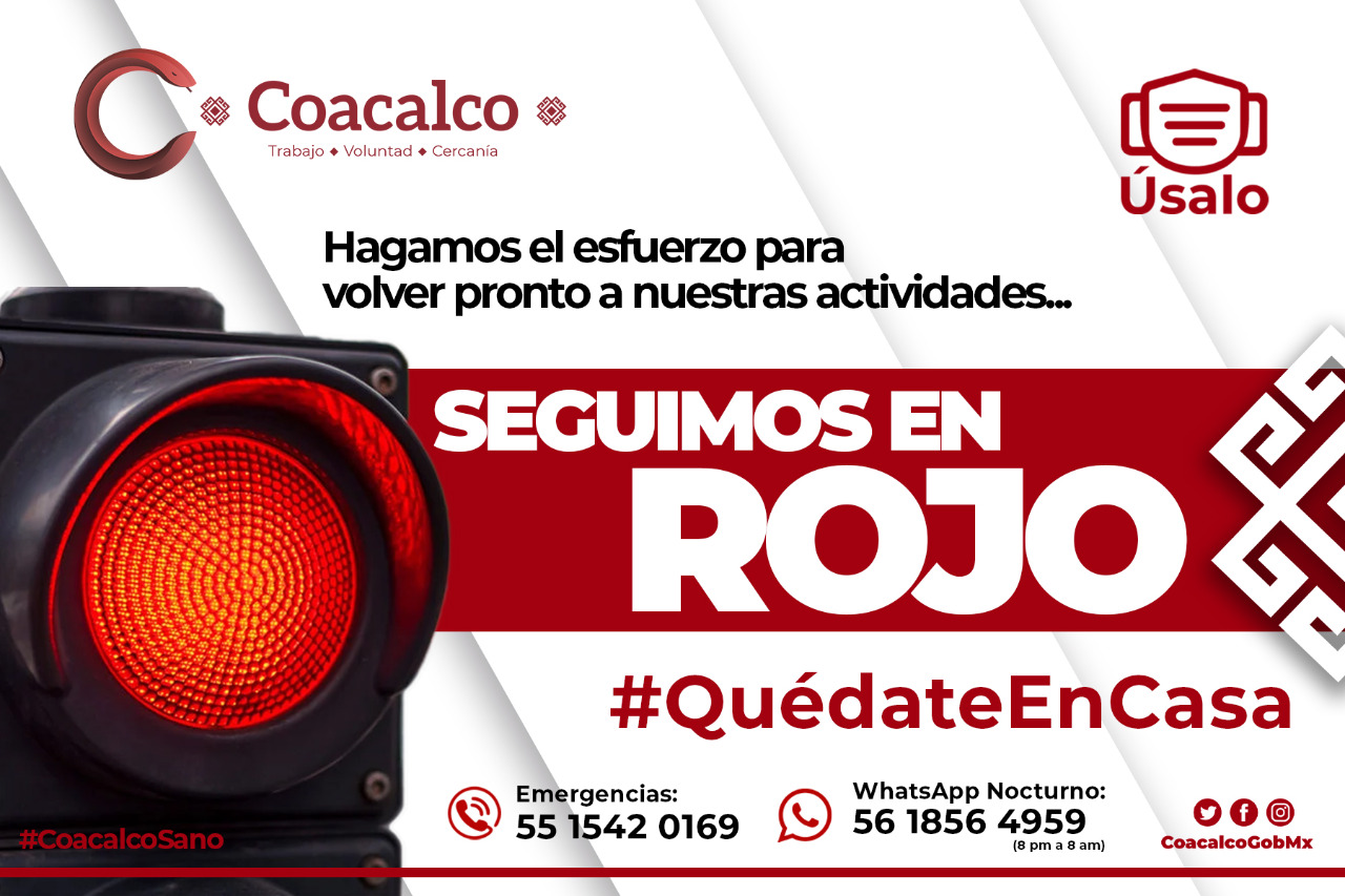 El Gobierno de Coacalco pone a disposición de la ciudadanía el número de emergencia 55 15 42 01 69 y el WhatsApp 56 18 56 49 59, éste último en horario nocturno, en donde pueden reportar cualquier aglomeración en comercios o reuniones sociales.