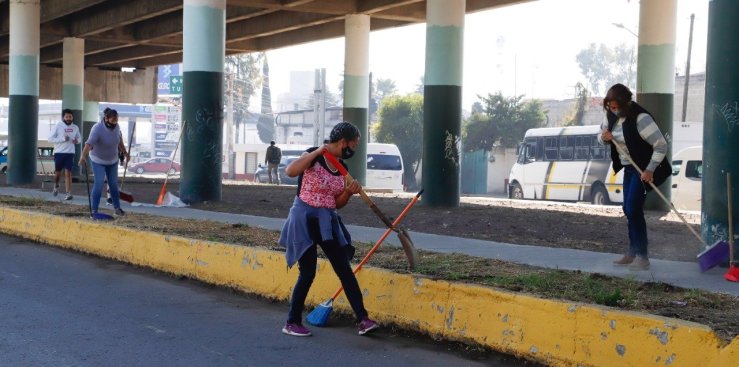 Con el apoyo de los trabajadores municipales se estarán ejecutando las tareas de mejoramiento en las áreas de mayor tránsito vehicular y peatonal, como en las inmediaciones de la estación del tren Suburbano, donde diariamente acuden miles de personas y unidades del servicio público.