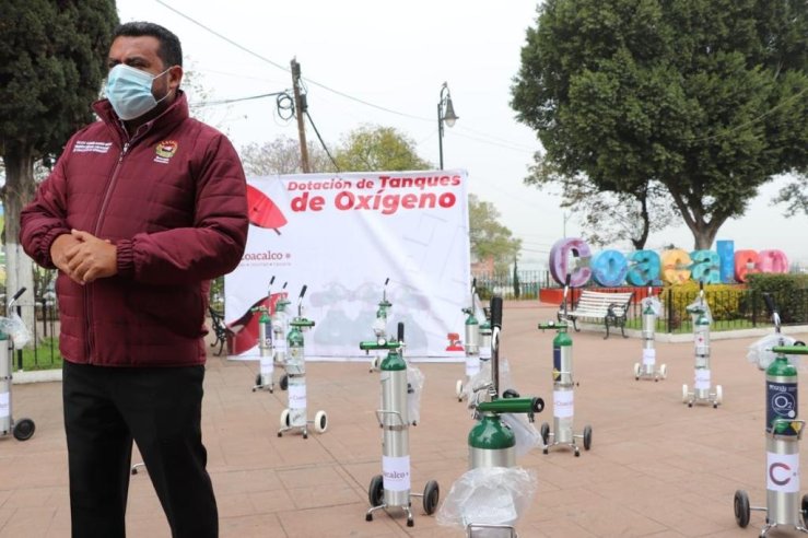 Coacalco, Méx.- .- El Gobierno de Coacalco, que preside el Alcalde Darwin Eslava, inició la dotación de tanques de oxígeno a la ciudadanía del municipio que requieran de este apoyo y que por la escasez que hay no cuenten con dicho insumo.