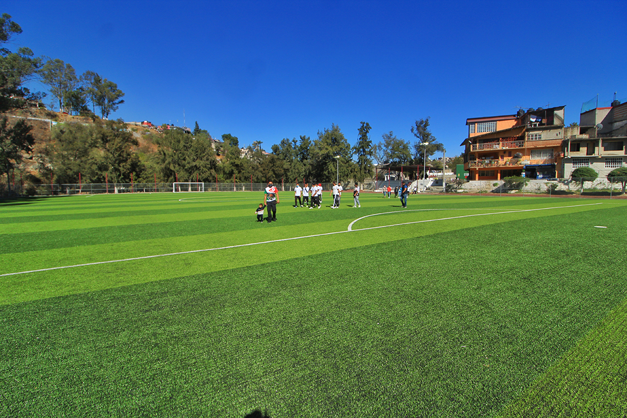 Cabe mencionar, que los trabajos realizados en las instalaciones deportivas, por medio de fondos municipales, consistieron en la conformación de una cancha de fútbol, la colocación de pasto sintético, porterías, bancas, luminarias tipo estadio, cercado de malla ciclónica, equipamiento de un gimnasio al aire libre, rehabilitación de una cancha de usos múltiples, andadores de concreto estampado, así como resane y pintura de instalaciones.