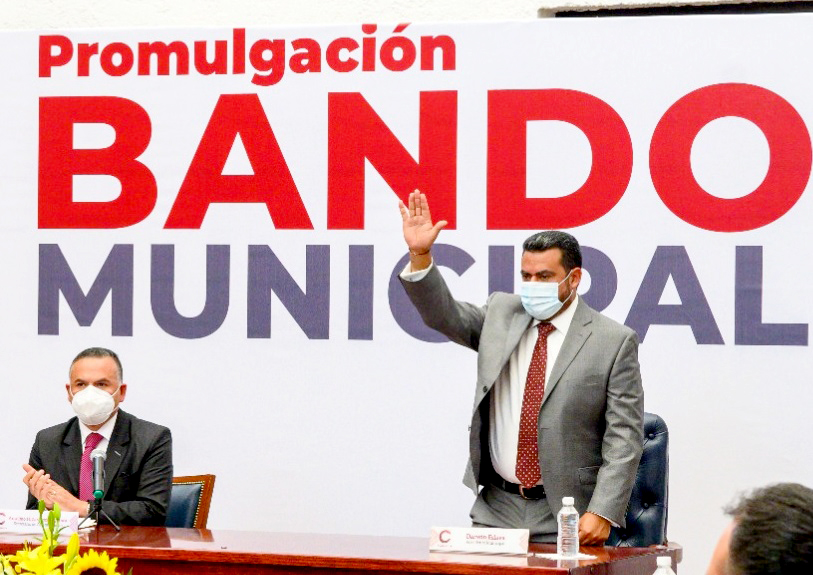 Coacalco, Méx.- Al promulgar el Bando Municipal 2021, el Alcalde, Darwin Eslava, destacó que hoy Coacalco tiene un documento rector como hace mucho tiempo no sucedía, porque escucha a la gente, es inclusivo y está encaminado a conformar un gobierno responsable, vanguardista y con visión de cambios profundos.