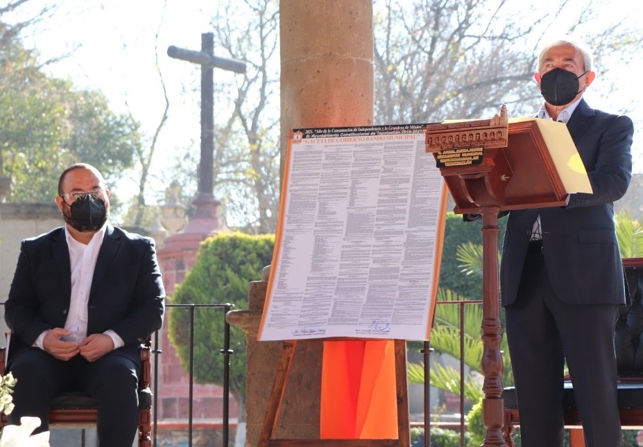 Tepotzotlán, Méx.- “La Constitución de 1917 es el pacto jurídico, político y social sobre el cual se asienta la vida de los mexicanos, es un baluarte de nuestras libertades y aspiraciones, crea organiza y hace funcionar todo el orden jurídico”. Aseveró el presidente municipal Ángel Zuppa Núñez, en el marco del CIV Aniversario de la Promulgación de la Constitución Política de los Estados Unidos Mexicanos y la publicación del Bando Municipal 2021 de Tepotzotlán.