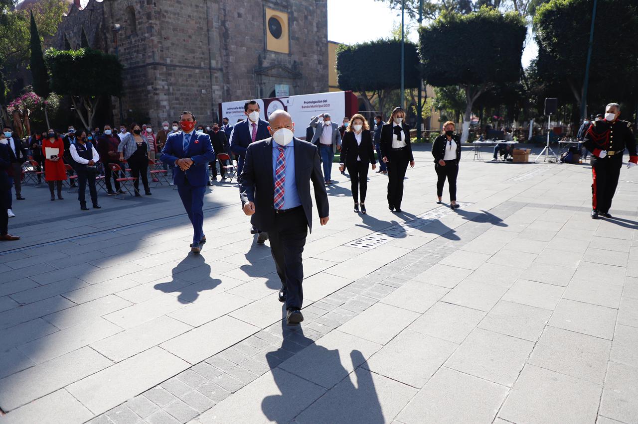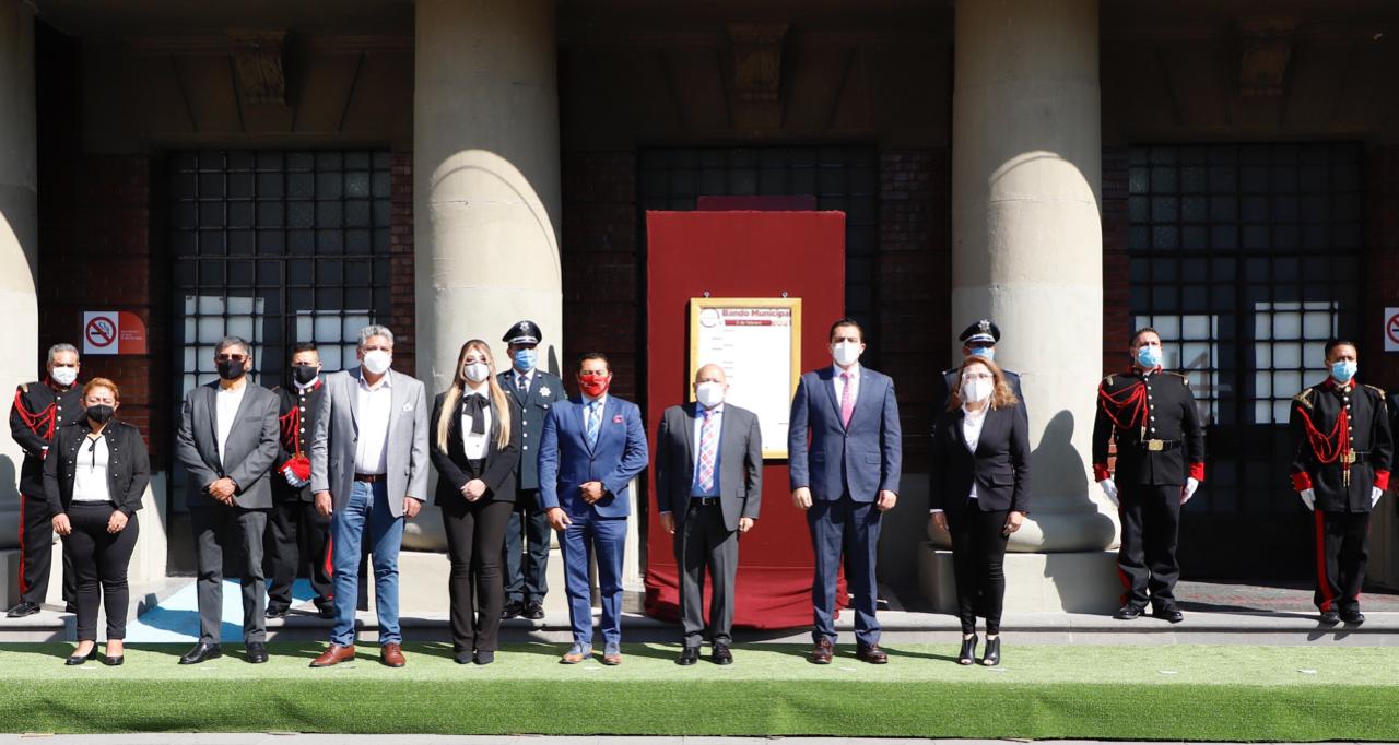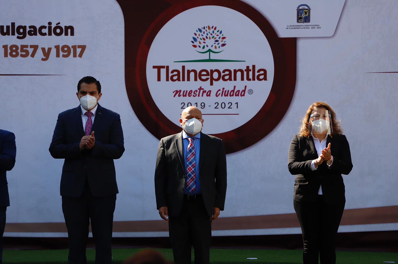 Tlalnepantla, Méx.- El Presidente Municipal, Raciel Pérez Cruz, encabezó el acto conmemorativo de la promulgación de la Constitución Política de los Estados Unidos Mexicanos y publicó el Bando Municipal 2021, que son el principio de legalidad y de paz para todas las ciudadanas y ciudadanos.
