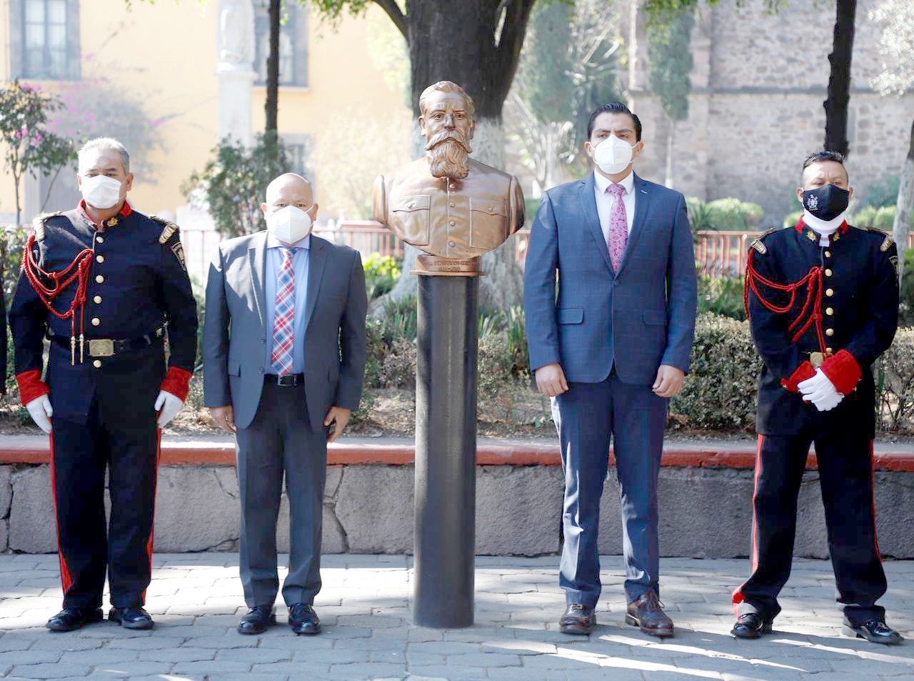 Durante la promulgación del Bando Municipal 2021, Raciel Pérez Cruz realizó una guardia de honor en el busto de Venustiano Carranza.