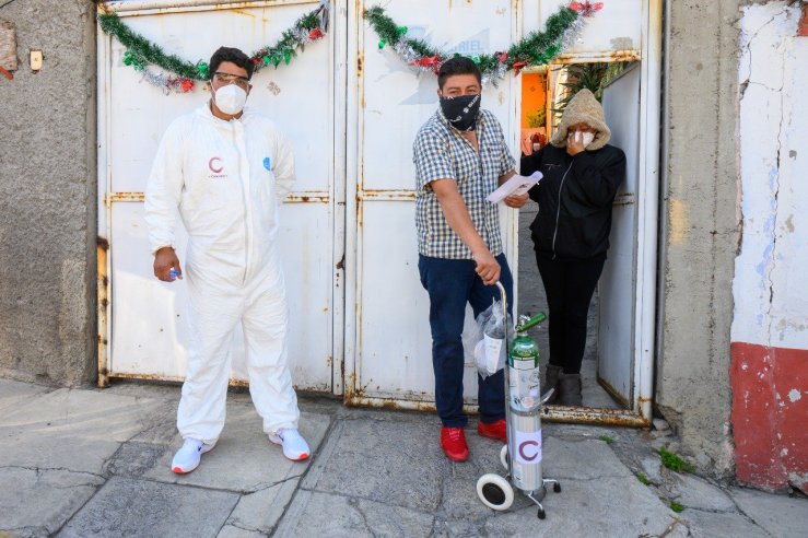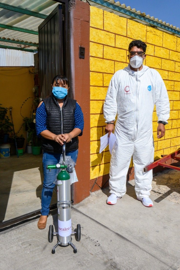 Coacalco, Méx.- El Gobierno de Coacalco que preside el Alcalde Darwin Eslava continúa la entrega de tanques de oxígeno a pacientes de Covid-19 que requieren de dicho apoyo, mismos que son llevados directamente al hogar del beneficiado.