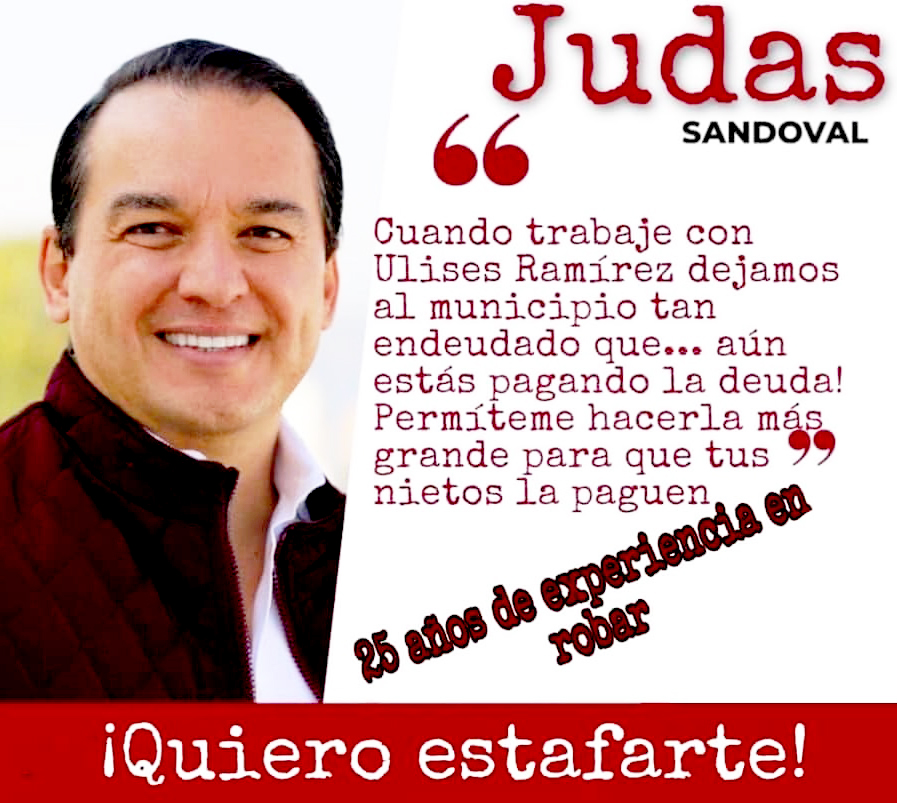 “Nefasto y corrupto” Jonás Sandoval Orozco, quien ostenta un pasado tenebroso tanto políticamente, como administrativamente hablando. Simplemente saqueo las arcas públicas para su “padrino y mentor, el oceánico” Ulises Ramírez Núñez (a) “el pingüino”.