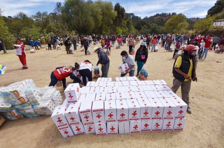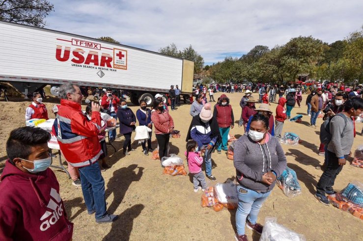 Texcoco, Méx.- El Delegado Estatal de Cruz Roja Mexicana en el Estado de México, Jorge Alberto Forastieri Muñoz, encabezó la entrega de ayuda humanitaria en beneficio de 400 familias de las comunidades de San Jerónimo Amanalco, Guadalupe Amanalco y Santa María Tecuanulco, del municipio de Texcoco, como parte del Plan Invernal 2020-2021 de la institución.