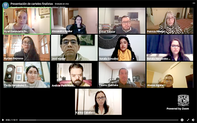 Santa Cruz Acatlán, Méx.- Estudiantes del noveno semestre de la licenciatura en Diseño Gráfico de la Facultad de Estudios Superiores Acatlán, obtuvieron el primero y segundo lugares, así como una mención honorífica en el 1er. Concurso Universitario de Carteles Científicos sobre los Objetivos del Desarrollo Sostenible, convocado por la UNAM, en colaboración con la Universidad de Indiana.