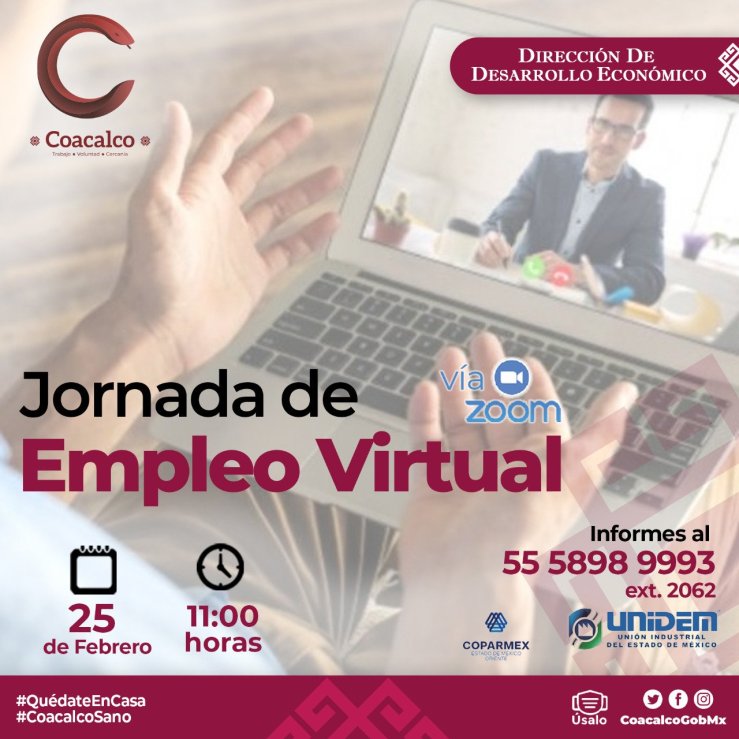 Coacalco, Méx.– Para dar continuidad a la vinculación entre ciudadanos y empresas, el Gobierno de Coacalco realizará la primera jornada virtual de empleo de este año, en la que participarán distintas empresas, mismas que ofertarán plazas laborales de todos los niveles.