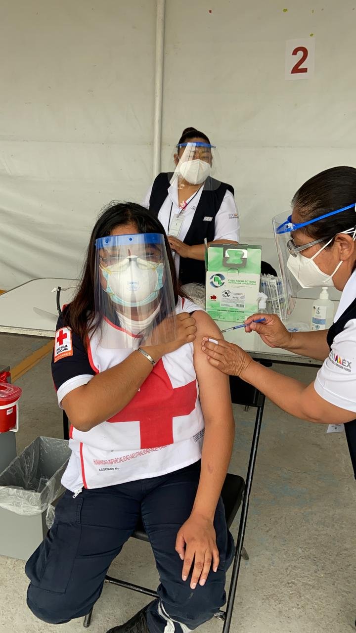 San Mateo Atenco, Méx.- Un total de 435 técnicos en urgencias médicas adscritos a las 31 Delegaciones Locales Cruz Roja Mexicana en el Estado de México comenzaron a recibir este jueves la vacuna contra Covid-19, en el Hospital Regional de Alta Especialidad de Ixtapaluca, por ser ellos parte de la primera línea que combate la pandemia causada por el coronavirus SARS-CoV-2.