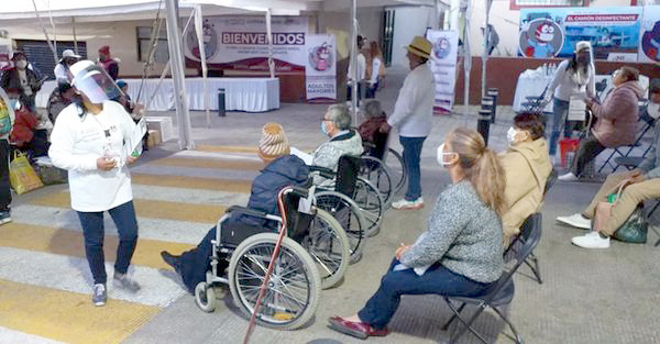 Desde el arranque esta mañana de la inoculación en el estacionamiento de Palacio Municipal, este proceso se desarrolló con orden y los adultos mayores recibieron una atención esmerada y ágil de parte de los voluntarios, quienes los canalizaron adecuadamente para la aplicación de la vacuna.