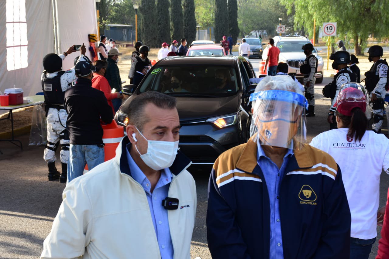 Cabe señalar que se desde temprano se dieron cita decenas de vehículos sobre la avenida Jesús Jiménez Gallardo, para accesar a la vacunación, sin embargo, la fila se agilizó de forma constante una vez que se inició el proceso, durante el cual se tomaron las medidas sanitarias, tanto del personal médico, de apoyo y de logística.