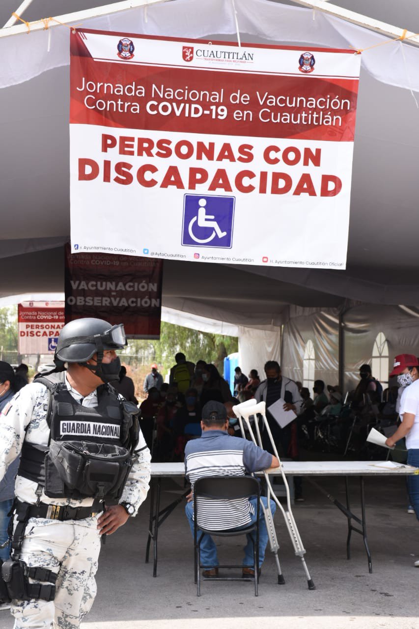 Apuntó que para garantizar la integridad de las personas que acuden a vacunarse, así como para el mantenimiento del orden, fueron desplegados en la zona elementos de Protección Civil y Bomberos, al igual que de la policía municipal y de la Guardia Nacional.