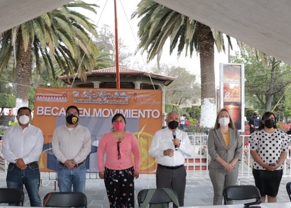 Bajo estrictos protocolos sanitarios, como el uso obligatorio el uso de cubrebocas, respetar la sana distancia y atender las indicaciones del personal del ayuntamiento, el munícipe Ángel Zuppa, acompañado de la presidenta del DIF, Ma. De los Ángeles Zuppa Villegas e integrantes del cabildo, dieron inicio a la entrega de los apoyos económicos del programa “Una Beca en Movimiento” en la plaza cívica de este municipio.
