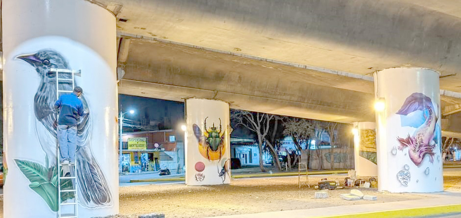 Se realizaron los trabajos en los bajo puentes del municipio murales artísticos con temas sociales, por jóvenes grafiteros.