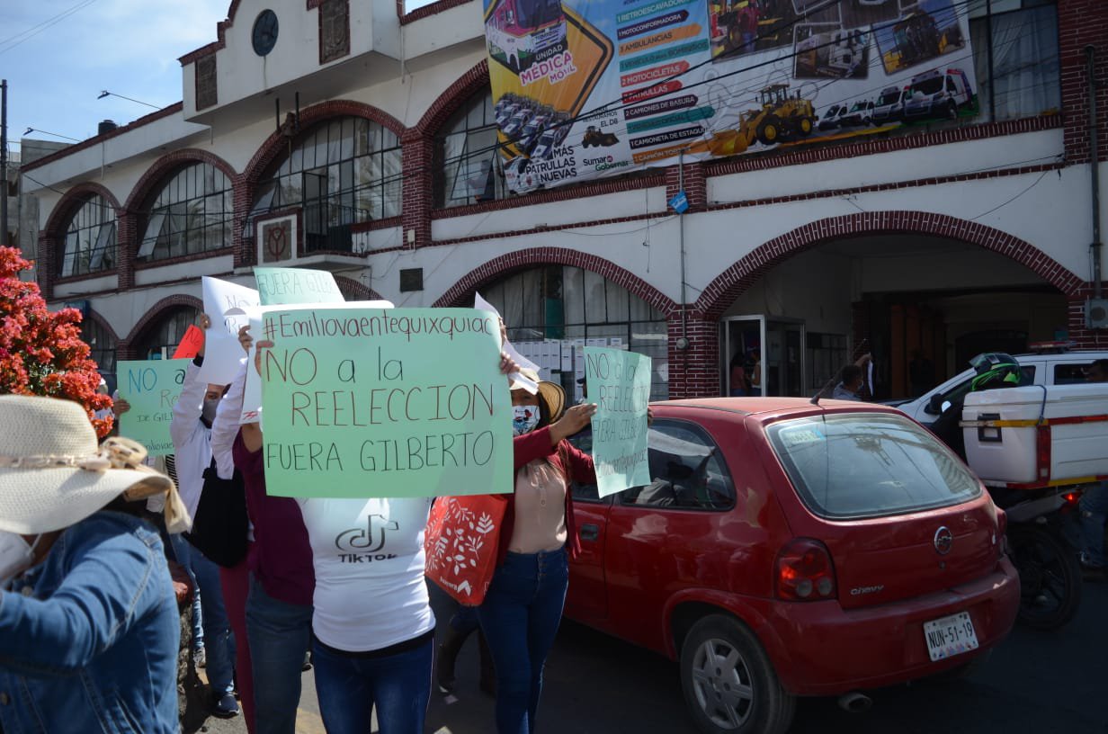 Al grito de ¡No a la reelección, No a la imposición!, los pobladores manifestaron su enojo y rechazo a que el alcalde de Nueva Alianza busque gobernar por un segundo periodo.